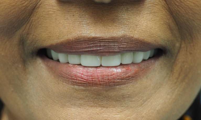 We restored the patient's smile using porcelain veneers to address worn, chipped, and discolored teeth. The veneers were custom-crafted to enhance both the shape and color, resulting in a natural-looking, bright, and healthy white smile. This minimally invasive treatment provided a durable and aesthetic solution for long-lasting confidence.